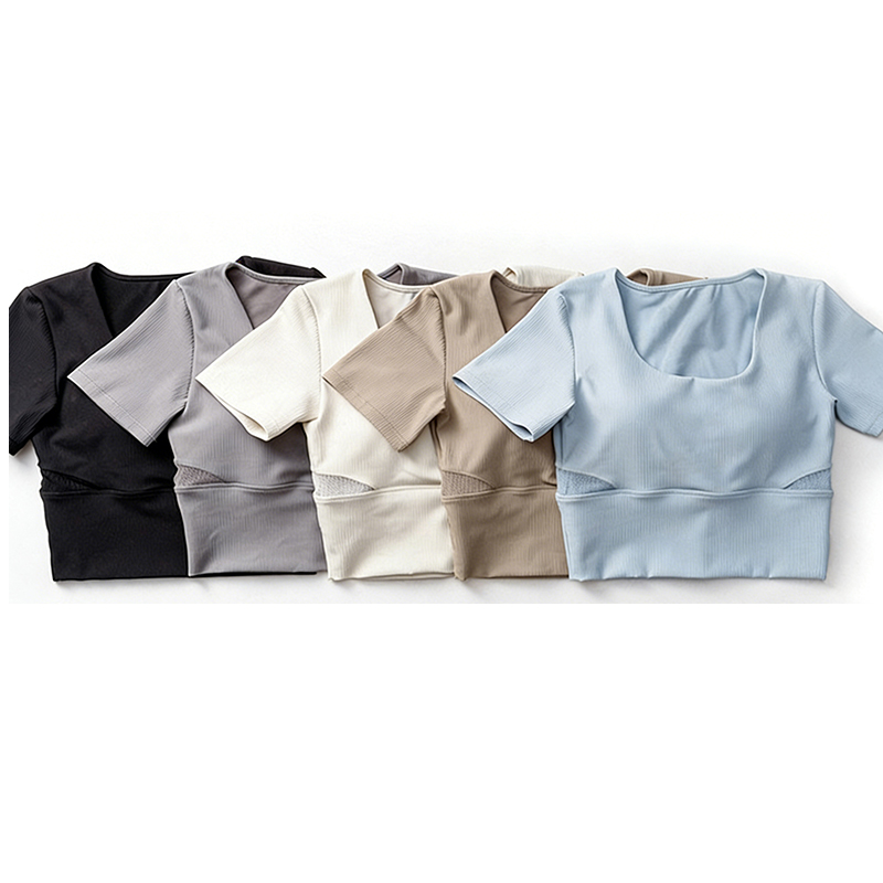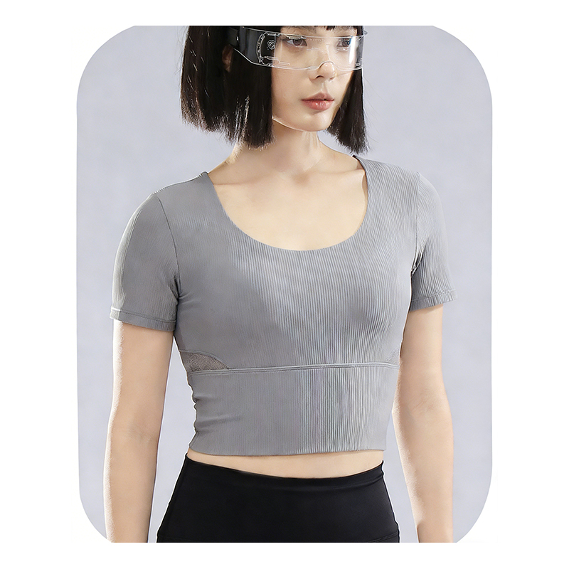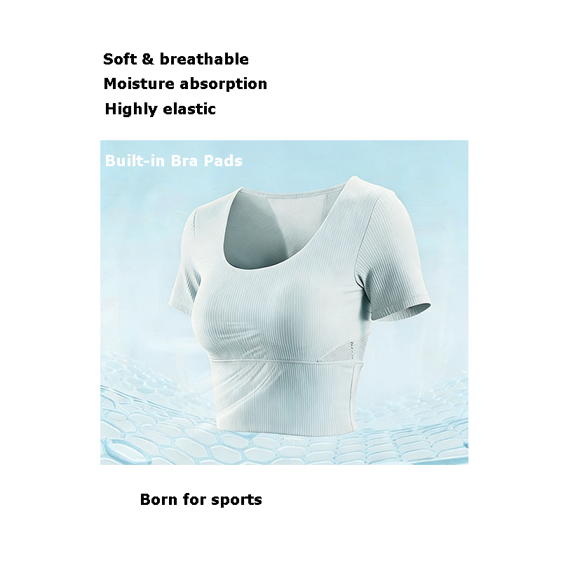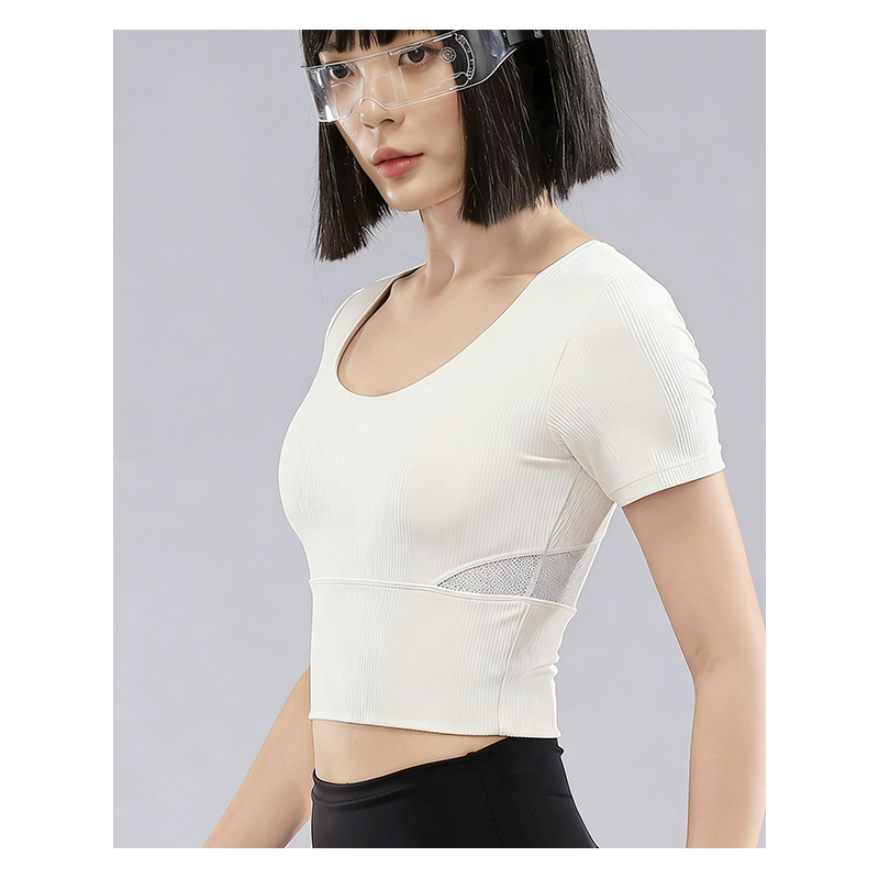 2-in-1 Mesh Short Sleeve Top with Integrated Bra - 24027
