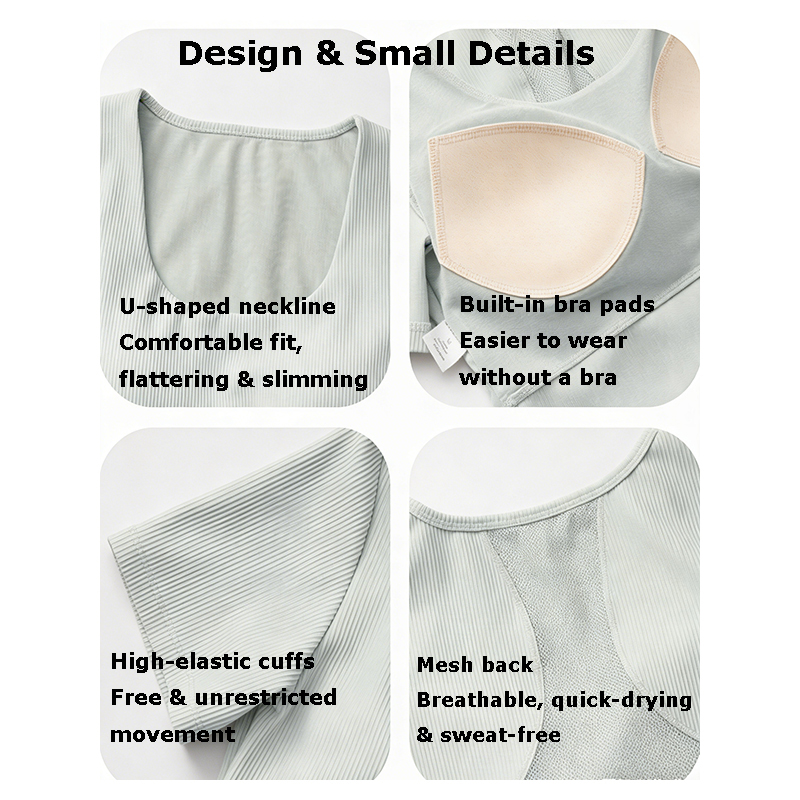 2-in-1 Integrated Design: A built-in sports bra fused with an outer mesh tank. One piece is all you need for complete support and coverage.